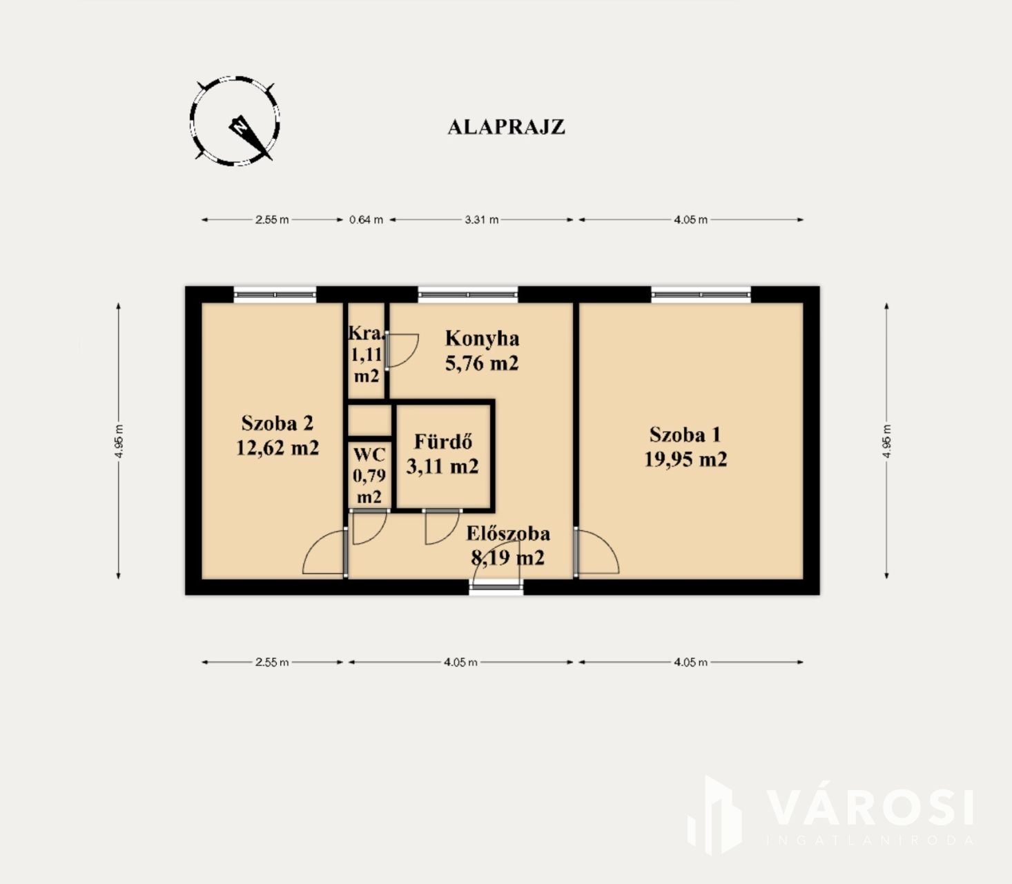 A lakás elrendezése praktikus: tágas nappali és hálószoba, különálló fürdőszoba és WC, valamint beépített szekrény biztosítja a megfelelő tárolóhelyet. A lakás egyedi fűtéses, saját kazánnal rendelkezik, a hőleadás radiátorokkal megoldott.