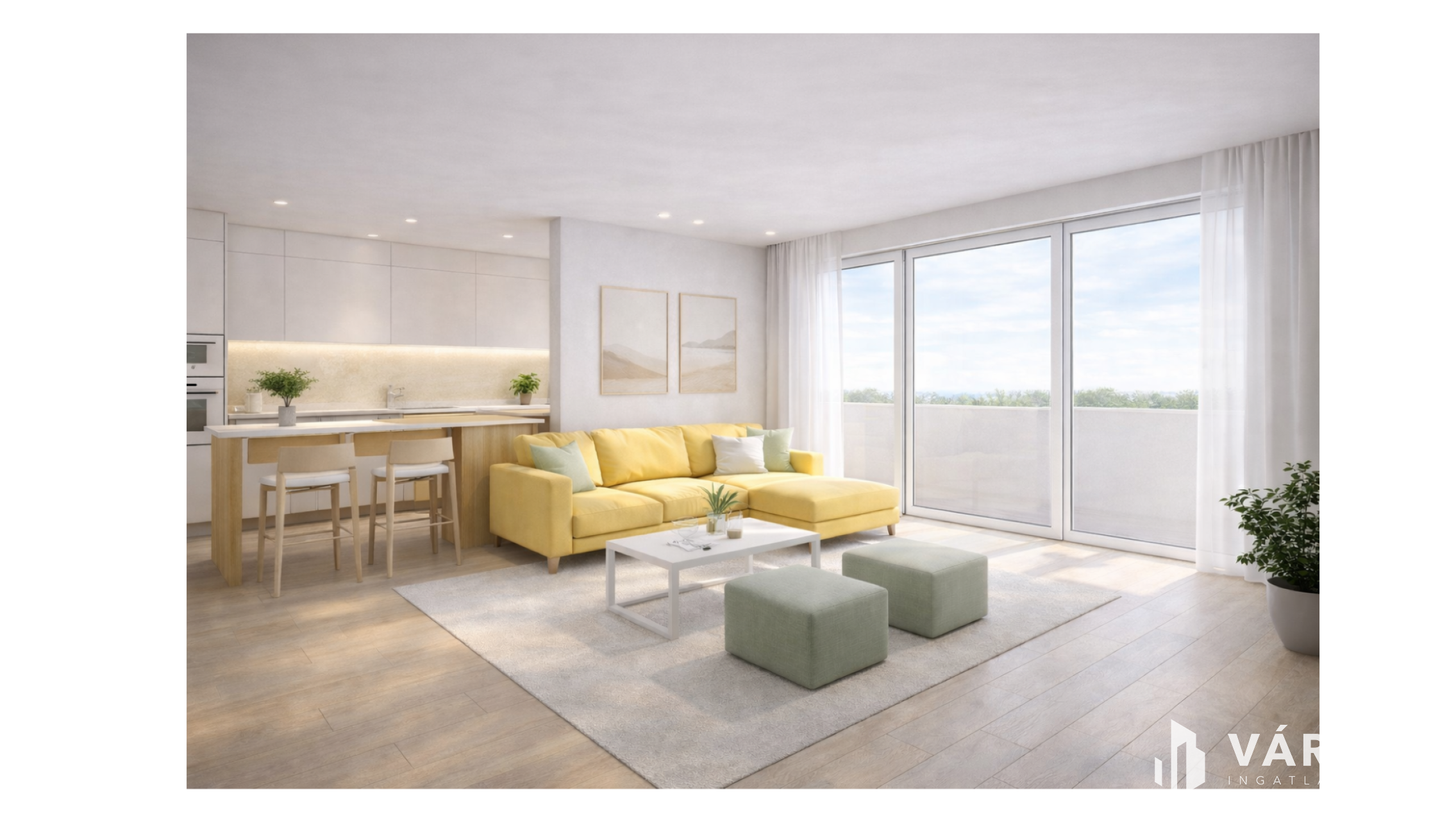 Elrendezés: Kényelmes amerikai konyhás nappali + 2 különnyíló hálószoba, fürdőszoba és külön mellékhelyiség.