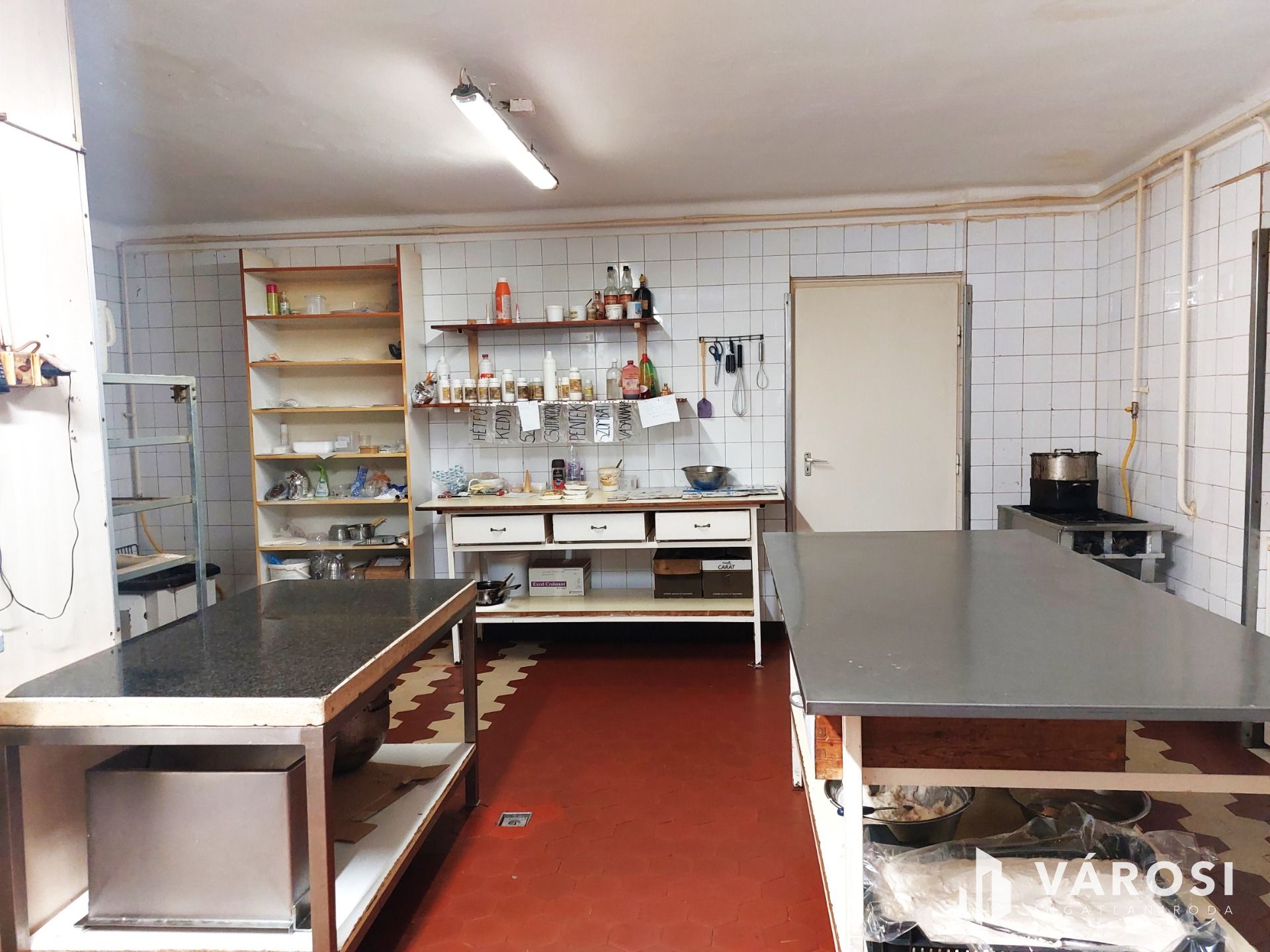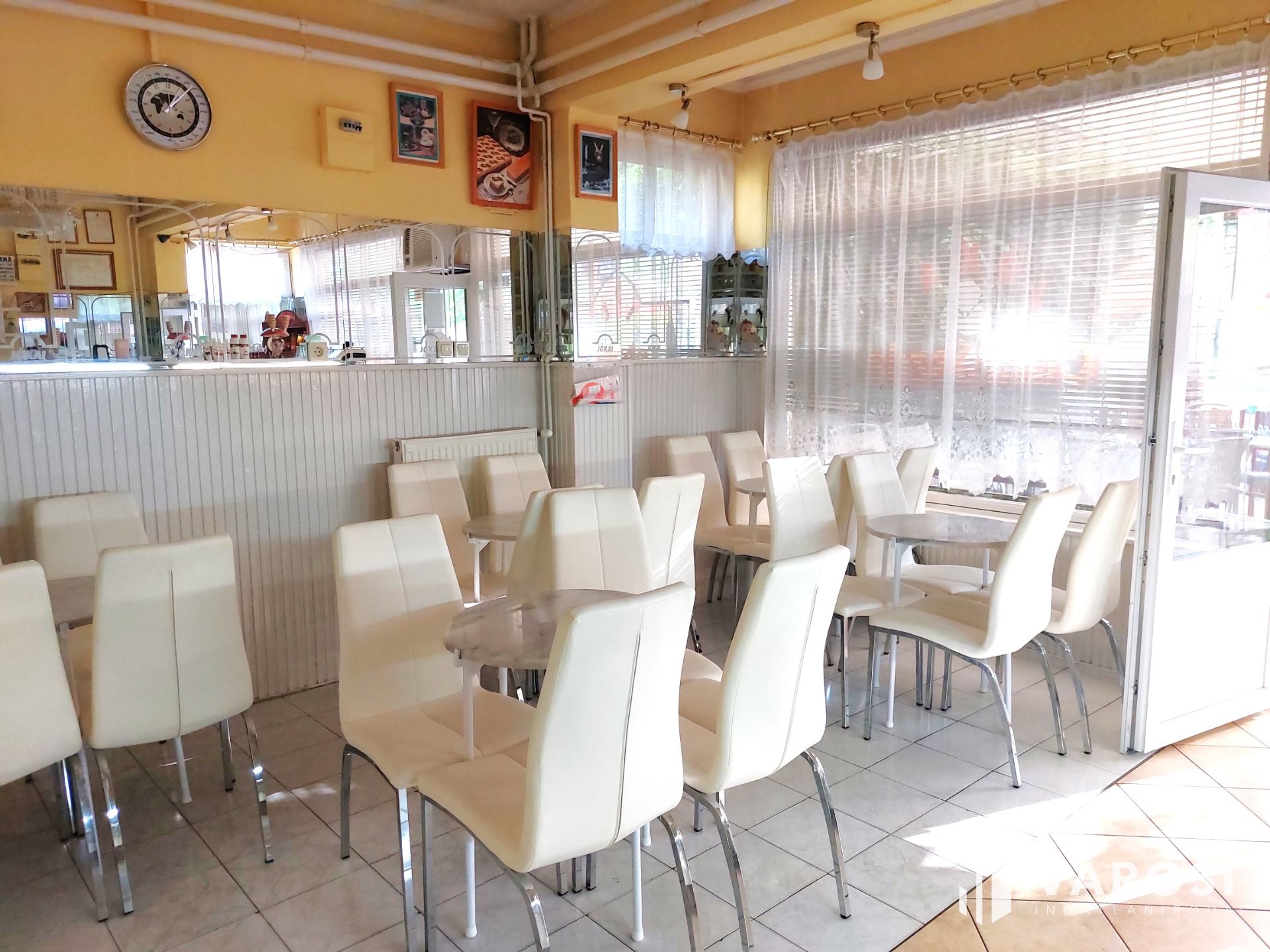 A földszinten, 83m2 alapterületen a több, mint 40 éve működő, ma is népszerű Jókai Cukrászda, amelyhez a melléképületben kialakított, professzionális berendezésekkel felszerelt cukrászüzem tartozik. A cukrászatban használt különleges olasz fagyigépek, pasztőröző gépek és más specifikus cukrászüzemi berendezések, felszerelések magas értéket képviselnek, melyet az eladási ár nem tartalmaz. Az ingatlan ebben az esetben kiürítve kerül átadásra.