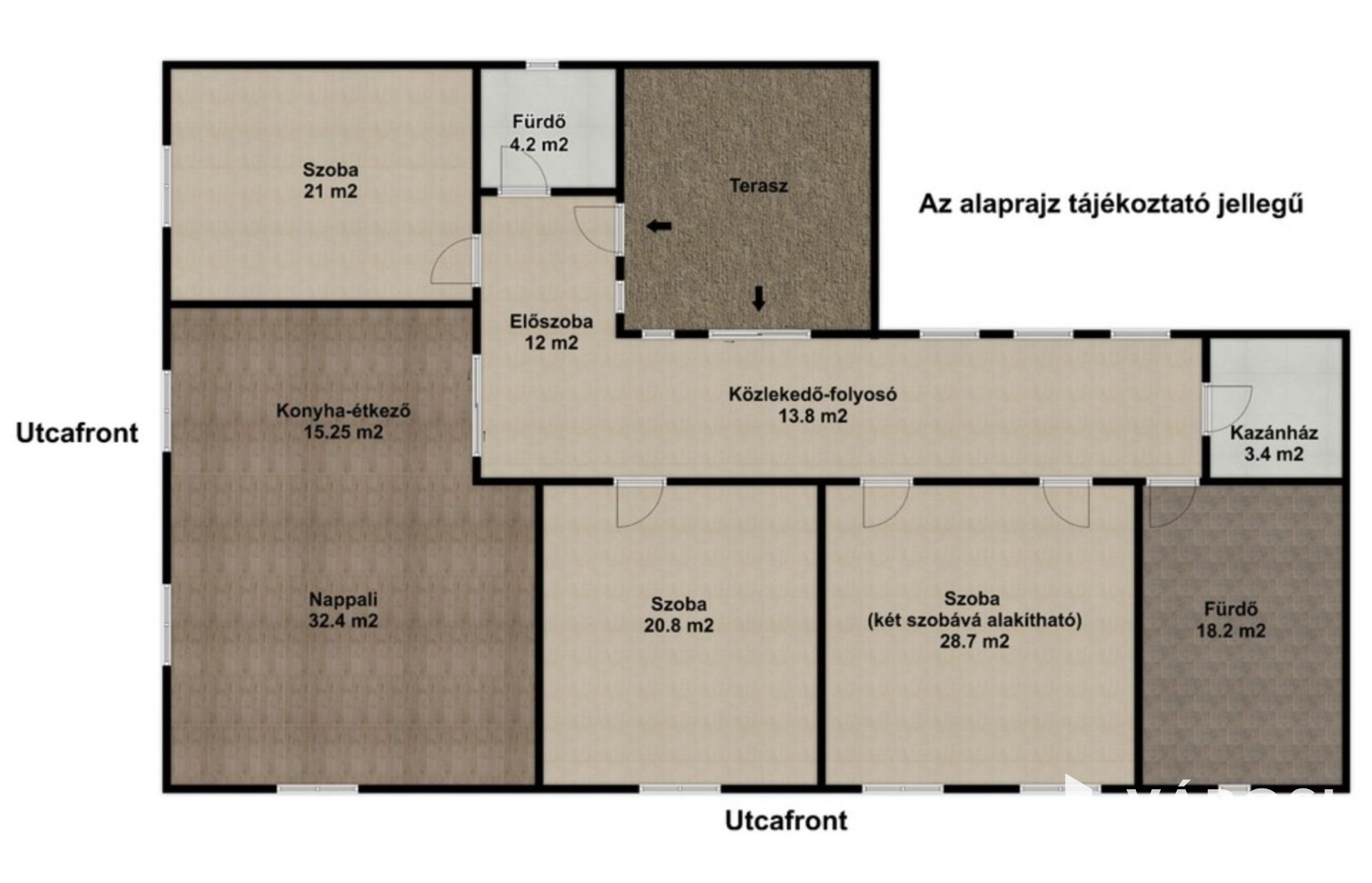 Az ingatlan 150 m² lakóterű, kényelmes méretű, napfényes helyiségekkel: