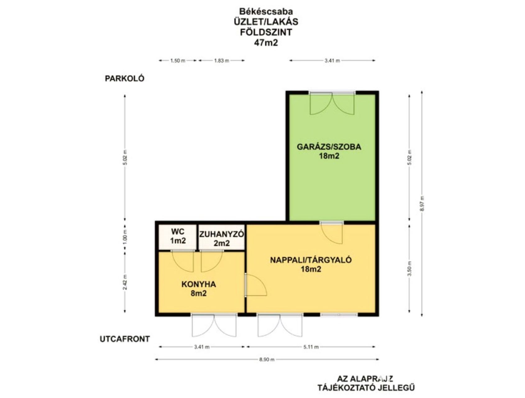 + Tulajdoni lapján üzlethelyiség szerepel, alapterülete 47m2, három bejárattal rendelkezik.