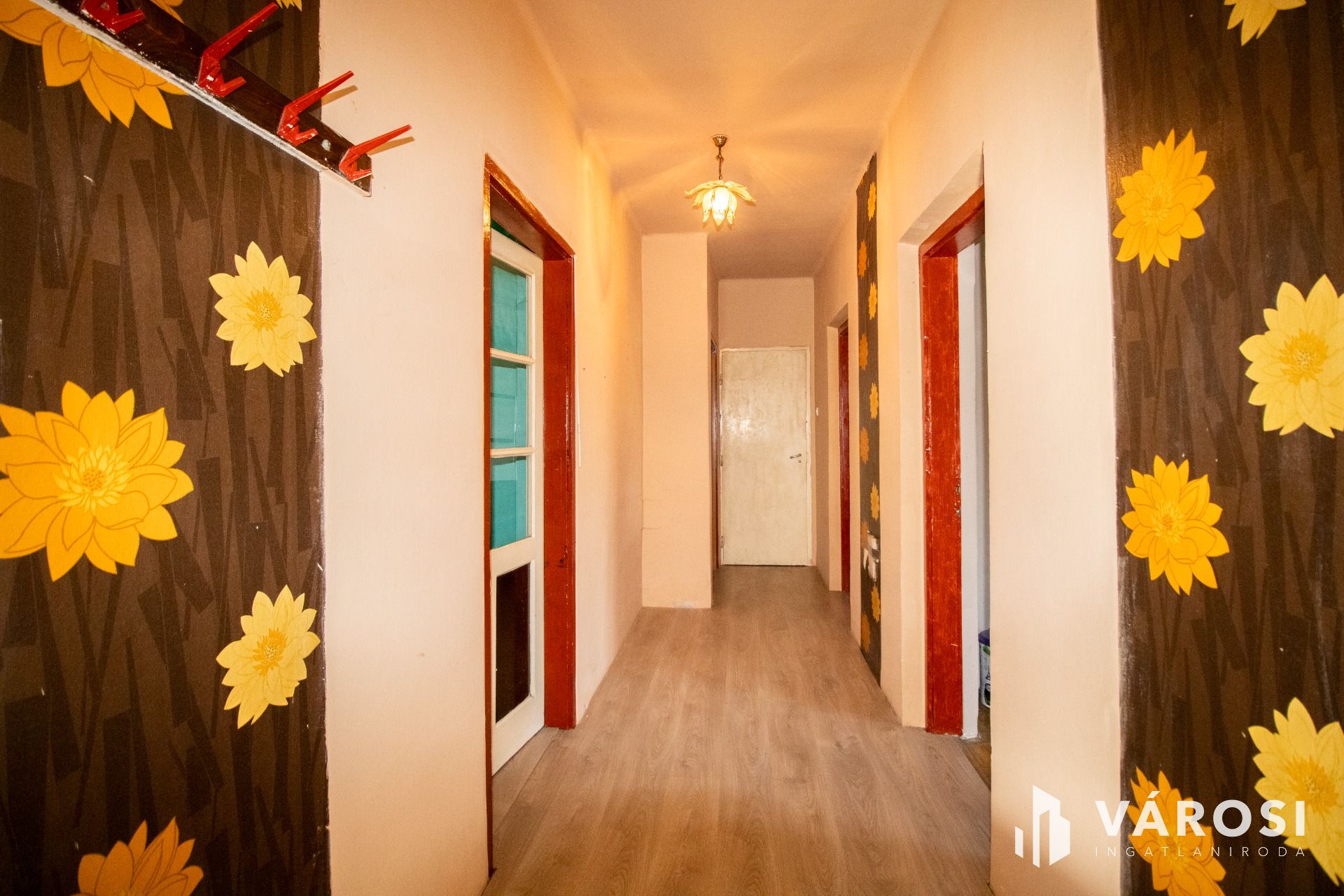 A burkolatok részben megújultak. Két szobában és a közlekedőben laminált padló található, az egyik szobában linóleum, míg a konyha–étkező, a fürdő és a WC járólapos burkolatot kapott.